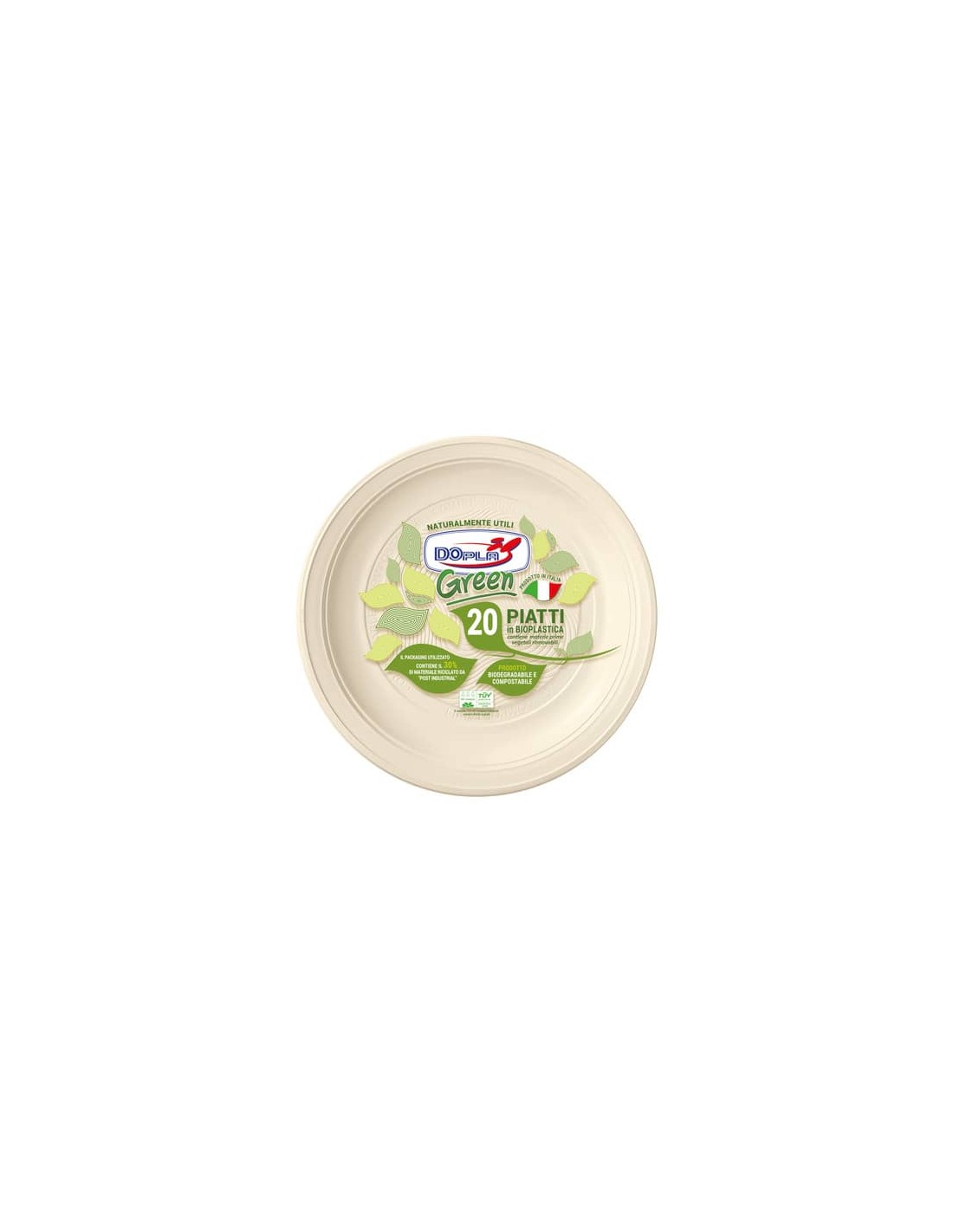Piatti frutta Mater-BI, colore avorio. Confezione da 20 pezzi. Diametro superiore: 170 mm. Diametro inferiore: 136 mm. Altezza: 7 mm. Peso netto unitario: 6 g. Contatto con alimenti: Max 70 °C. Non utilizzabile in forno. Max 500 Watt per 2 minuti in microonde.