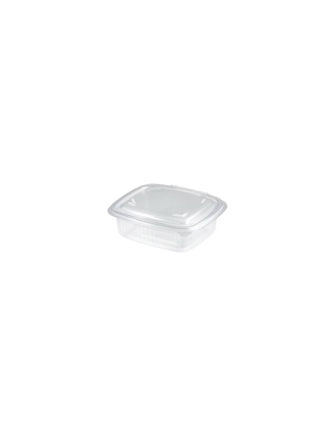 Vaschette con coperchio trasparente in polipropilene 370 ml. Confezione da 50 pezzi. Incernierato. Altezza: 46 mm. Contatto con alimenti: Max 90 °C per 15'. Microonde Max 500 Watt per 2'. No grill.