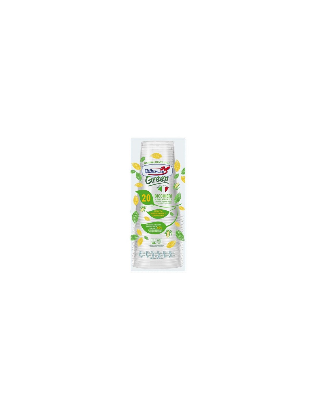 Bicchieri monouso in PLA Dopla Green 390 ml - conf. 20 pz - trasparente - 22708