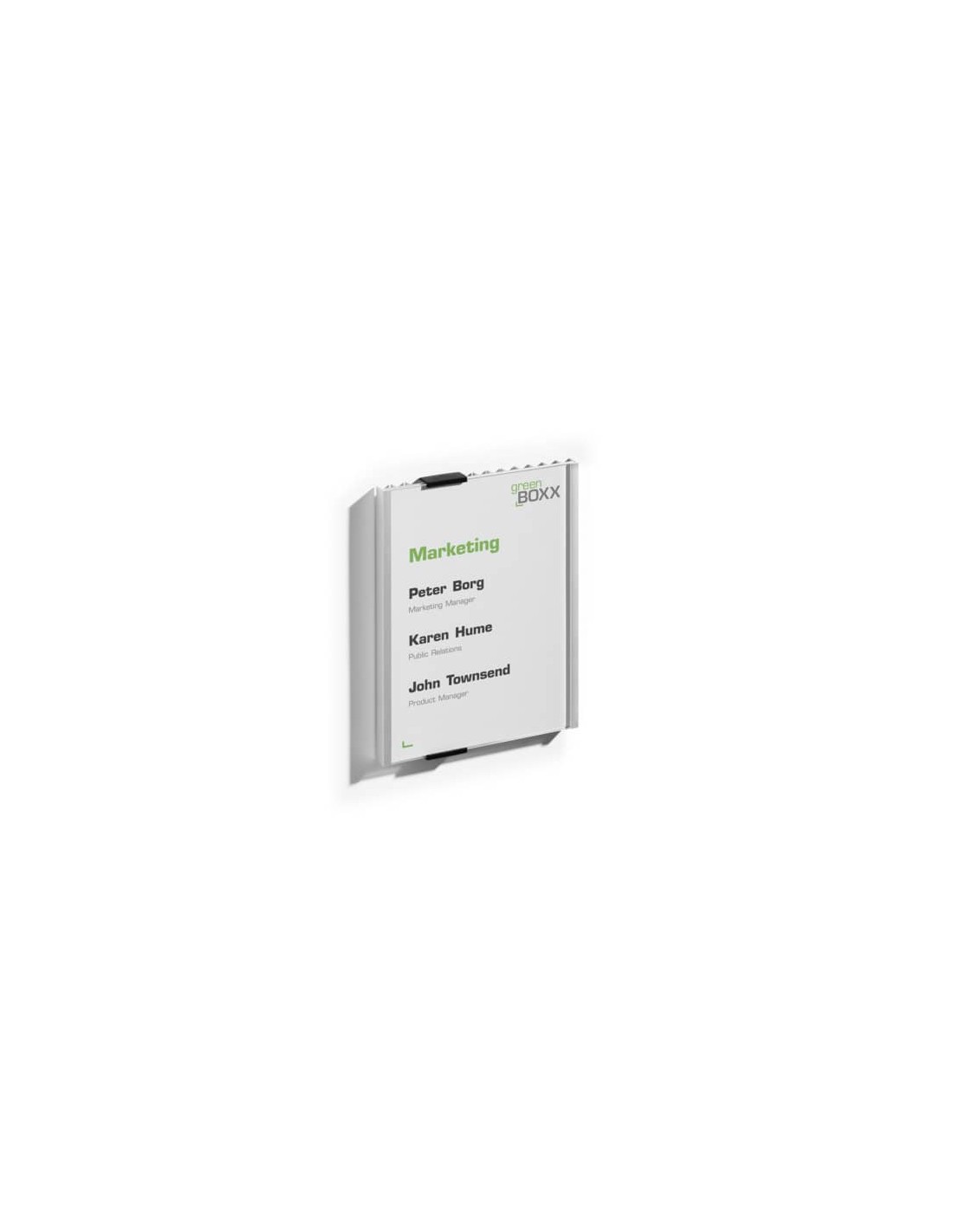 Targa per porte e pareti dal design classico, funzionale e raffinato, ideale per uffici e sale riunioni. Dotata di retro in alluminio di alta qualità e pannello frontale scorrevole in acrilico trasparente antiriflesso. I due cappucci neri fissati alle estremità consentono una facile apertura del pannello frontale. Si applica su qualsiasi superficie grazie al kit di montaggio a vite o al bi-adesivo inclusi nella confezione. Soluzione vincente anche in ambienti dove non si desidera praticare fori. L'inserto in cartoncino può essere personalizzato e stampato on-line tramite il software gratuito DURAPRINT® sul sito www.duraprint.it