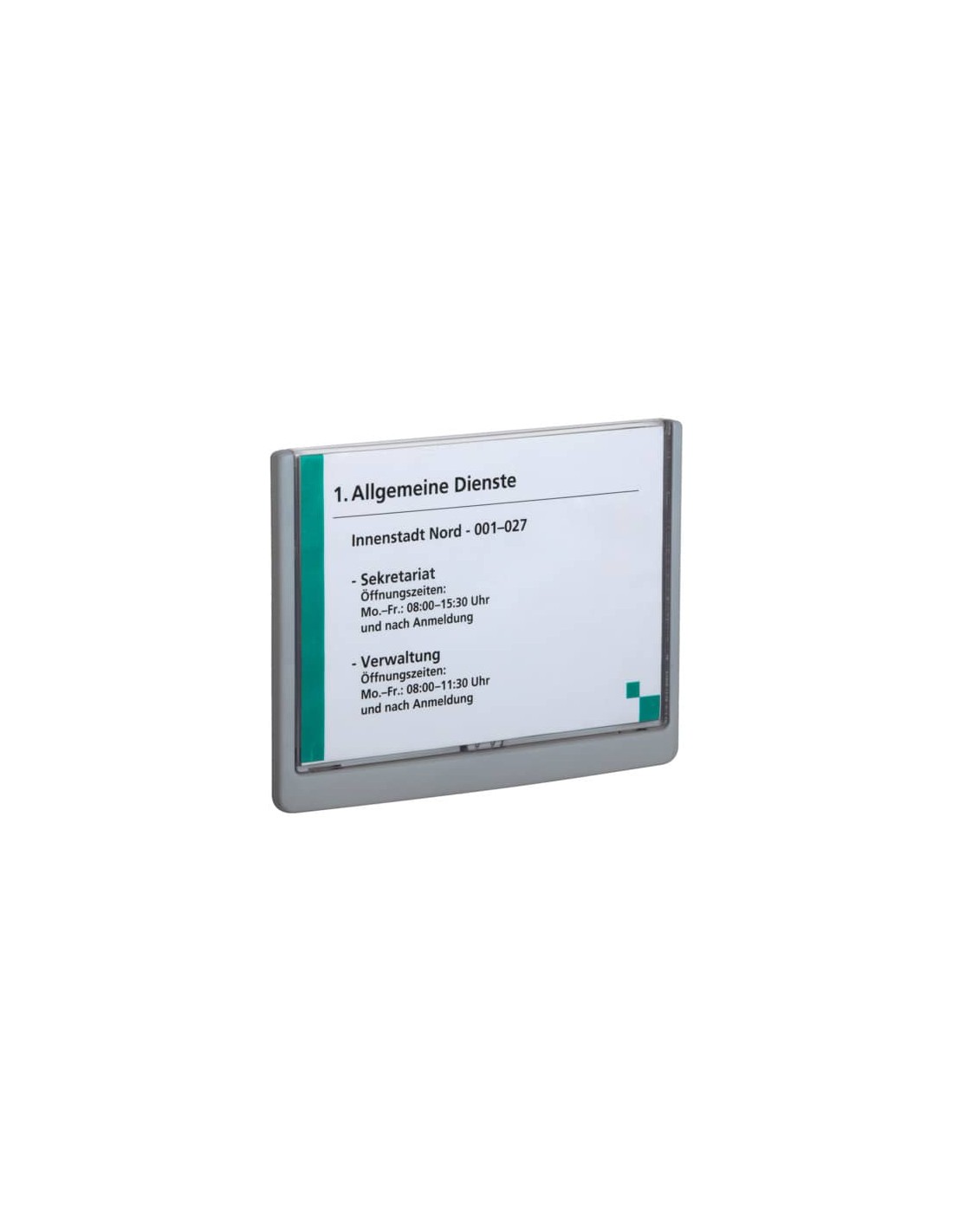Targa per porte e pareti con bordi arrotondati dallo stile moderno e funzionale, particolarmente elegante se applicata a superfici vetrate. Ideale per uffici e sale riunioni. Realizzate in ABS si contraddistingue per la facilità di montaggio e di utilizzo. L'apertura dello sportellino trasparente permette di inserire e rimuovere velocemente l'inserto e questo la rende perfetta per l'utilizzo in ambienti, come alberghi e centri congressi, in cui le informazioni devono essere sostituite frequentemente. E' la soluzione ideale anche in ambienti dove non si desidera praticare fori; si fissa infatti a porte o a pareti tramite il kit con viti oppure con bi-adesivo inclusi nella confezione. L'inserto in cartoncino incluso può essere personalizzato e stampato on-line tramite il software gratuito DURAPRINT® sul sito www.duraprint.it.
