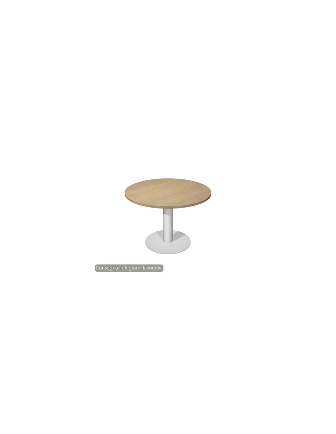 Piano realizzato in materiale bilaminato nobilitato melaminico di spessore 25 mm, antigraffio e antiriflesso. Bordo dei piani in ABS di 2 mm di spessore, antiurto e senza spigoli vivi. Gamba in metallo in forma tubo verticale diametro 10 cm, base in metallo diametro 49 cm, entrambi verniciati color grigio alluminio.