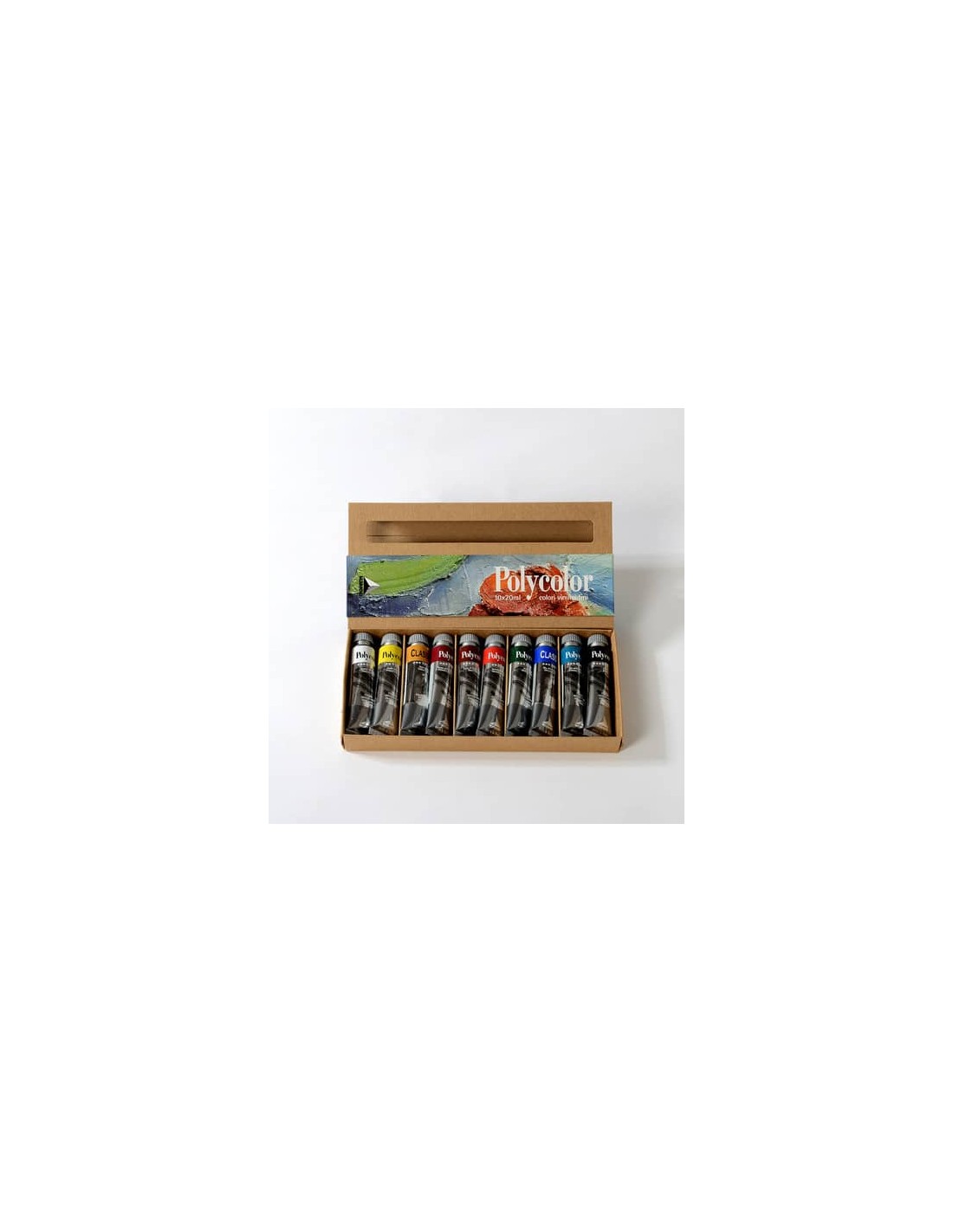 Colori vinilici fini in blister di cartone da 10 tubetti. Colori brillanti con finitura totalmente opaca e massima coprenza. Ideali per l'esecuzione di scenografie, cartellonistica, pittura su tela, decorazione d' interni e pittura murale in esterno, grafica, oggettistica, complemento d'arredo e mobili. Consistenza pastosa, densa, concentrata e piacevolmente pennellabile. Ottima capacità di distensione della pellicola pittorica sul supporto. Adatti ad ogni supporto, rigido o elastico, grezzo o preparato. Essicca in breve tempo in maniera omogenea. Concentrazione di pigmento elevata. Alta resistenza alla luce secondo la normativa ASTM - D4303 per i colori acrilici. Formato 20 ml. Colori assortiti.
