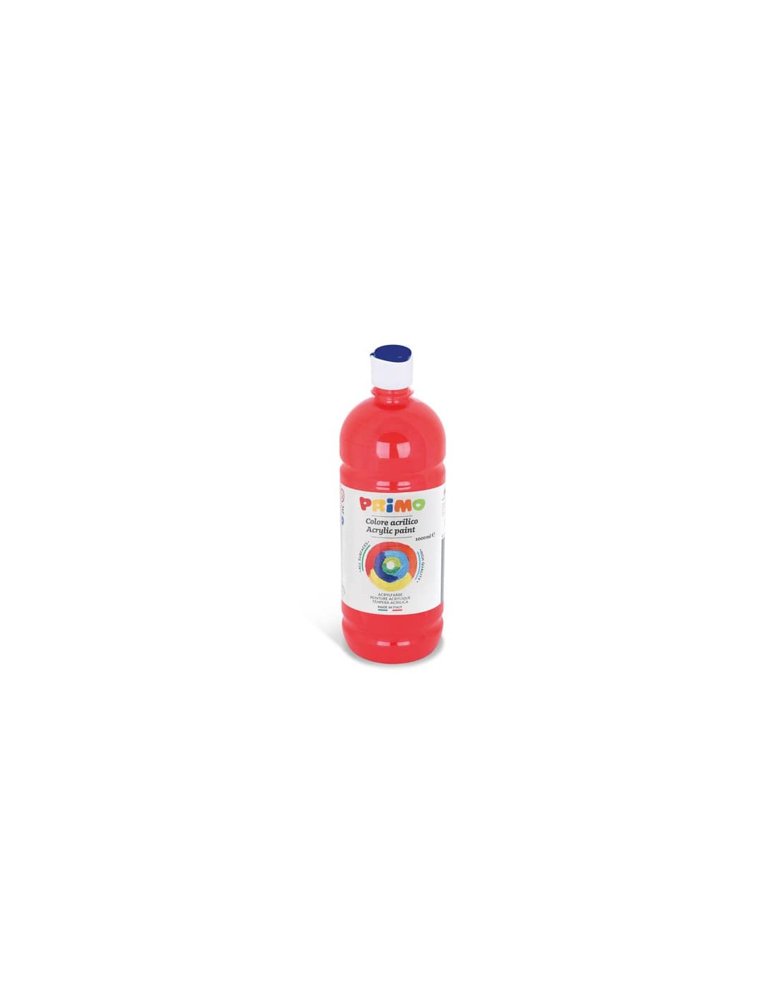 Colore acrilico a base d'acqua, in bottiglia con tappo dosatore, ideale per la didattica. Ad elevato contenuto di pigmento e resina acrilica, si stende facilmente a pennello e quando asciuga rimane vivo e luminoso, piacevole al tatto. É utilizzabile su qualsiasi substrato; stencil, spatole e spugne sono strumenti ideali per valorizzarne le potenzialità creative. Mescolando i colori si ottengono nuove tinte sempre intense e di colore vivo. Quando è perfettamente asciutto non presenta screpolature, anche se steso in strati spessi, e diviene permanente. Durante l'utilizzo si raccomanda di proteggere gli abiti e la superficie di lavoro. Rimuovere immediatamente eventuali macchie indesiderate secondo istruzioni. Rimuovere il sottotappo di sicurezza prima dell’uso. Formato 1000 ml. Colore rosso.