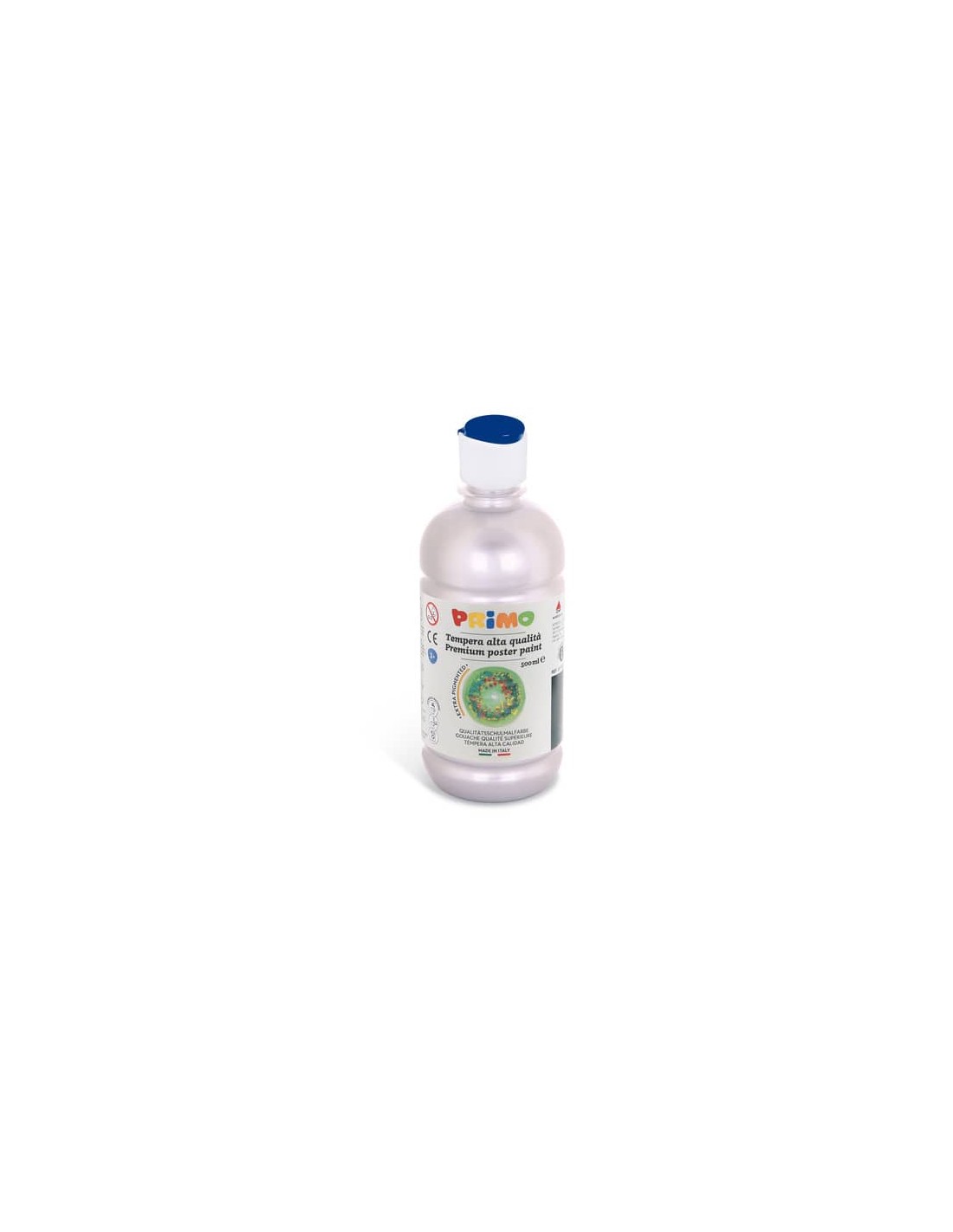 Tempera liquida primi passi in bottiglia PET con tappo dosatore, adatta a chi si accosta per la prima volta alla tecnica della pittura a tempera e ai più giovani utilizzatori. Permette stesure sufficientemente coprenti, mantenendo un ottimo effetto brillante e colori vivaci. Le tinte sono facilmente miscibili tra loro per ottenere variazioni di tonalità. È utilizzabile su superfici diverse come carta, cartoncino, cartone, legno, stoffa, vetro, terracotta, metallo e plastica. Si può fissare con vernice o fissativo idoneo. Compatibile con tutti i prodotti ad acqua delle linee Morocolor. Formato 500 ml. Colore argento.