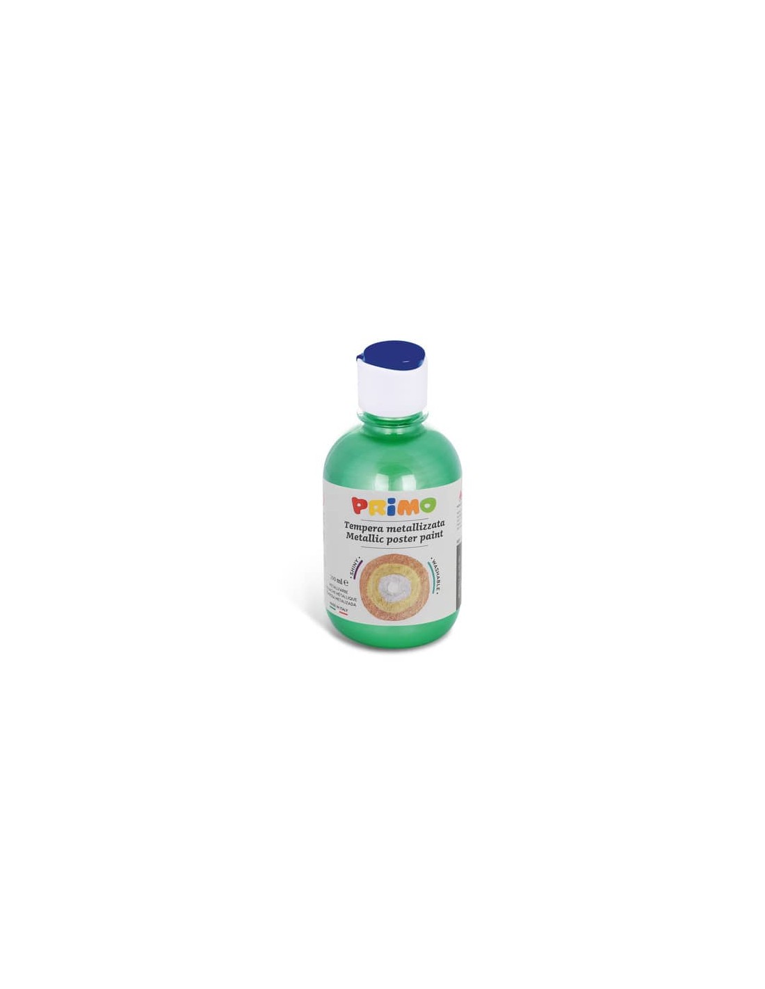 Colore a tempera pronto all’uso, di prima qualità, in bottiglia con tappo dosatore. Consente stesure coprenti e sovrapposizione di strati, avendo cura di attendere la perfetta asciugatura. La pennellata risulta uniforme, con ottimi risultati di brillantezza e vivacità di toni. È utilizzabile su superfici diverse come carta, cartoncino, cartone, legno, stoffa, vetro, terracotta, metallo e plastica. Formato 300 ml, colore verde.