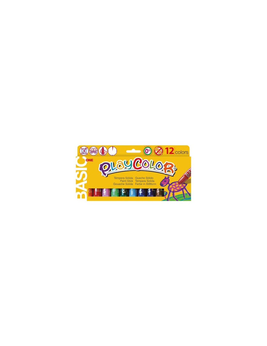 Tempera solida in stick per colorare e divertirsi senza sporcarsi. Confezione da 12 colori assortiti.
