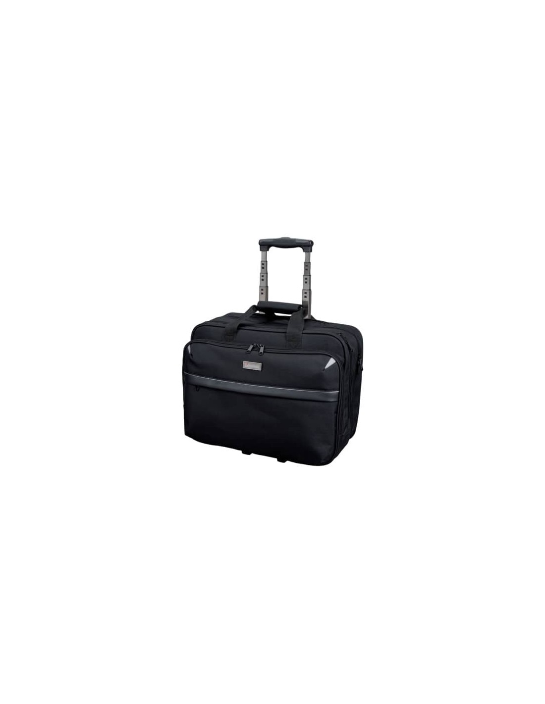 Trolley porta PC con cintura, scomparto a cerniera sul lato anteriore con tre scomparti in formato A4, passante portapenna, porta biglietti da visita, tasca multifunzione, ulteriore scomparto a cerniera sul lato anteriore. Internamente: scomparto imbottito porta PC e due ampi scomparti principali. Colore: nero.