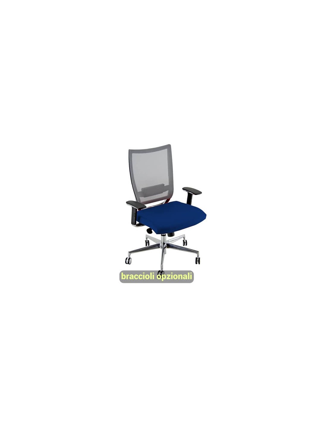 Sedia semidirezionale girevole Concept COTXL, ergonomica con supporto lombare regolabile, con caratteristiche di altissima resistenza per "taglie forti". Schienale in nylon a rete grigio, meccanismo a contatto permanente, seduta con elevazione a gas, meccanismo Synchro antishock. Struttura in alluminio pressofuso.