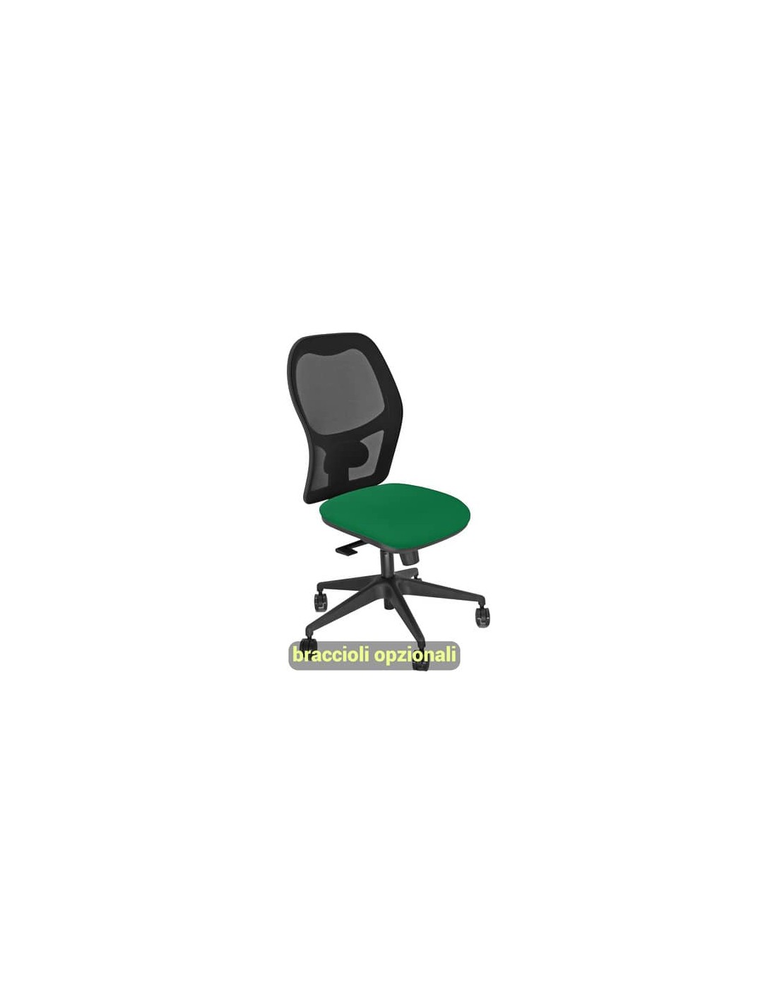 Struttura in acciaio, schienale in Nylon. Rivestimento sedile Eco, 100% Polipropilene 380g m/l, cucito artigianalmente. Colore verde. Con ruote, braccioli opzionali (codici 110071, 110072, 110074, 110075).