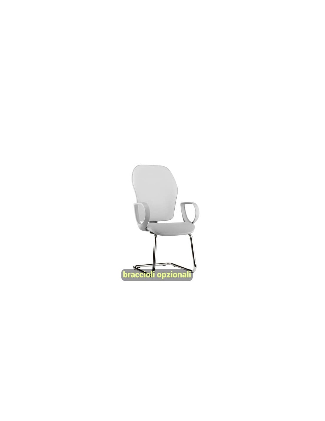 Struttura e base in acciaio cromo, schienale in rete nero. Rivestimento del sedile in vera pelle smerigliata di colore bianco. Braccioli opzionali.