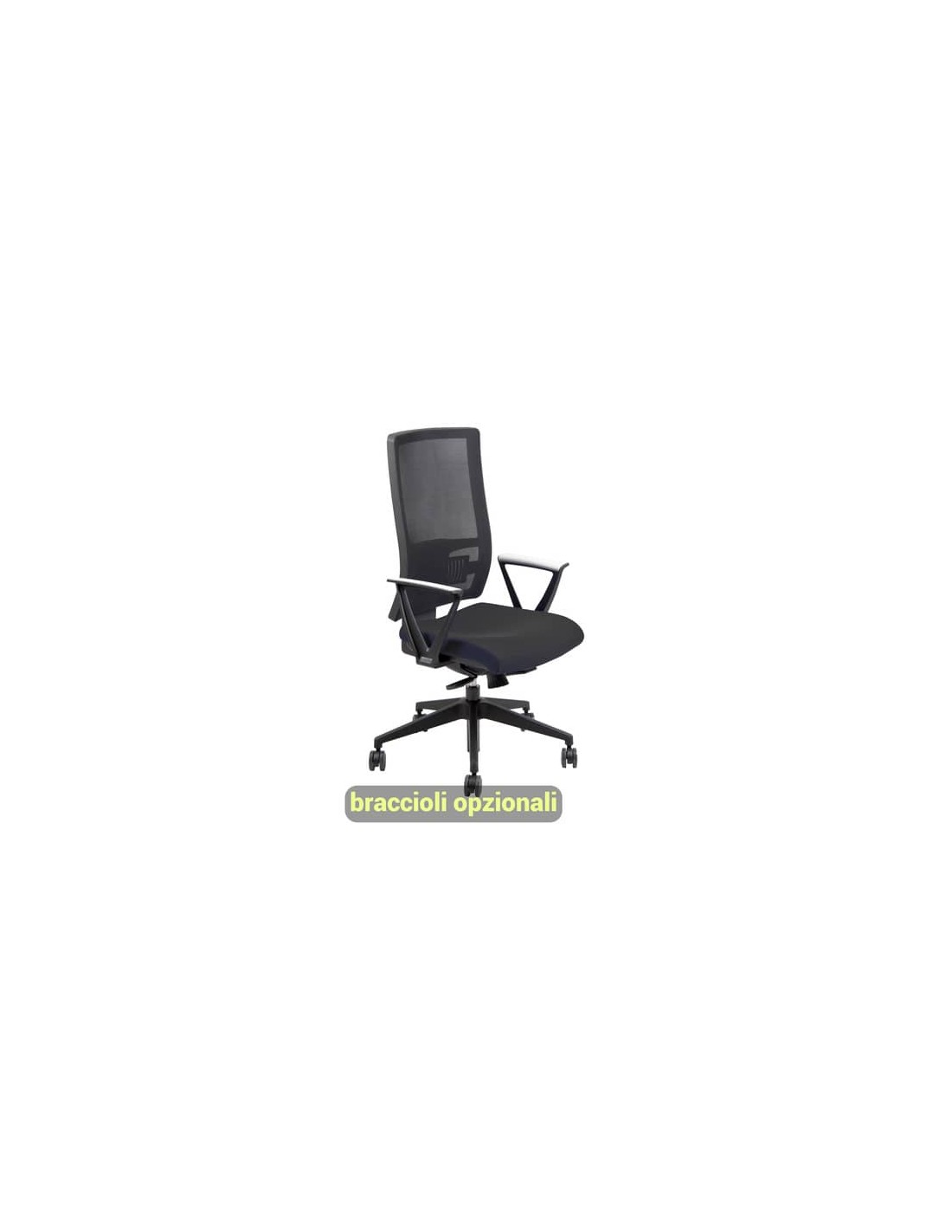 Sedia operativa girevole Nereide NDAE, schienale in nylon a rete nero traspirante, regolabile in altezza,seduta con elevazione a gas, meccanismo Synchro con 4 blocchi anti shock, meccanismo a contatto permanente. Durevole, adatta ad impegni gravosi.