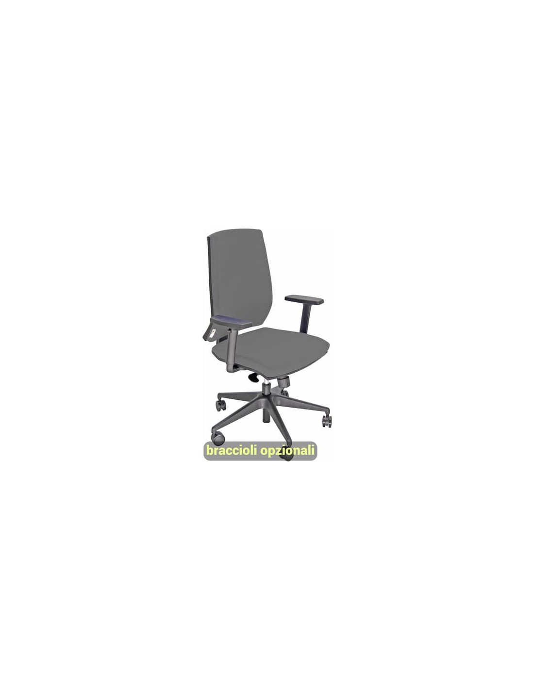 Sedia operativa girevole Larissa LR1S, schienale regolabile up-down, supporto lombare regolabile, seduta con elevazione a gas, meccanismo Synchro con 4 blocchi anti shock, meccanismo a contatto permanente. Adatta per un uso regolare. La linea Larissa si compone di una vasta gamma di poltrone operative con diverse finiture sia negli accessori, braccioli e base, che nella livrea cromatica complessiva.