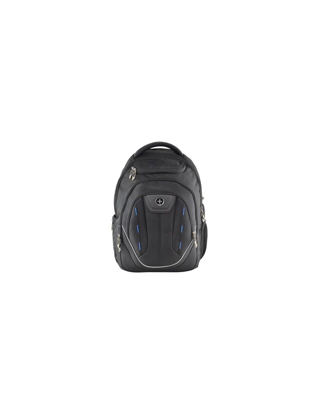Zaino Terabyte Swiss Digital, composto da tre scomparti frontali con vari alloggiamenti interni e scomparto posteriore con apertura totale. Tasca con protezione RFID, sistema di ricarica intelligente, custodia imbottita per laptop (15''), custodie protettive modellate per smartphone e powerbank. Tasca superiore per occhiali e 2 tasche laterali con cerniera, schienale imbottito mesh con passante per trolley, maniglia e spalline imbottite.